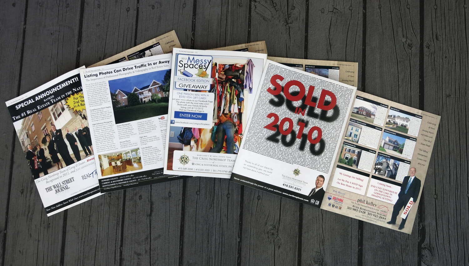 My print collateral was published in The Washington Post, The Baltimore Sun, The Howard County Times, The Carroll County Times, The Gazette, Homes and Land Magazine, Real Estate Magazine, The Montgomery County Magazine, The Howard County Magazine etc, to name a few. To see my designs printed in these large publications, as a young designer, made me awe-struck. It gave me confidence that this was the profession I wanted to pursue as my career and I am forever thankful for this job experience.